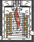 the coil, where it receives heat liberated from combustion.